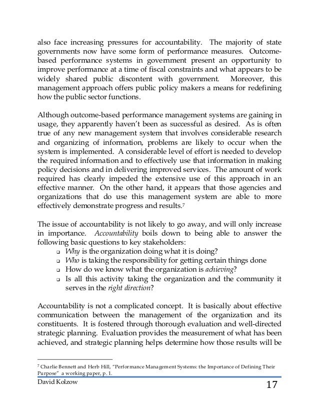 Respond to how to measure performance in nonprofit organizations, how the outcomes can be measured in nonprofit organizations through performance measurement and how the outcome perspective of performance measurement helps the case organization to contribute to the change of the lives of the individuals. ... Retrieve Here